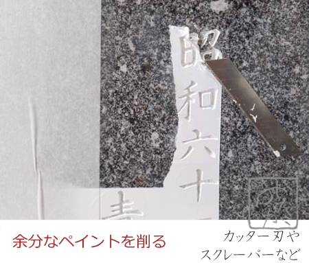 石目が粗い、または古い墓石はリペイントを避けてください。塗料が周囲の凸凹した石目に入ってしまい、斑点状に残ってしまいます。
